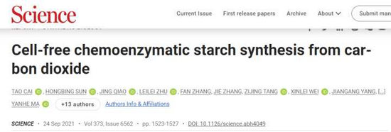 近期,中国科学院天津工业生物技术研究所在淀粉的人工合成方面取得重大突破性进展,国际上首次实现了二氧化碳到淀粉的从头合成,相关工作于2021年9月24日发表于国际顶尖杂志《科学》。