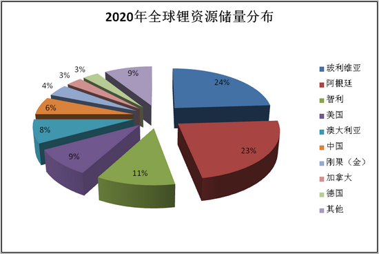 USGS的最新数据显示,玻利维亚、阿根廷、智利是全球锂资源储量最丰富的三个国家,合计占全球锂资源储量的58%,获得了南美“锂三角”的称号。相比之下,中国作为全球最大的锂电池生产国,生产了全球70%的锂电池,锂资源储量却仅占6%。