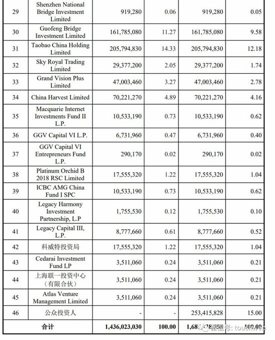 此外,蚂蚁集团持股15%,为单一最大股东,Taobao China持股14.33%,可以说,阿里系持股大幅超过了创始团队持股。