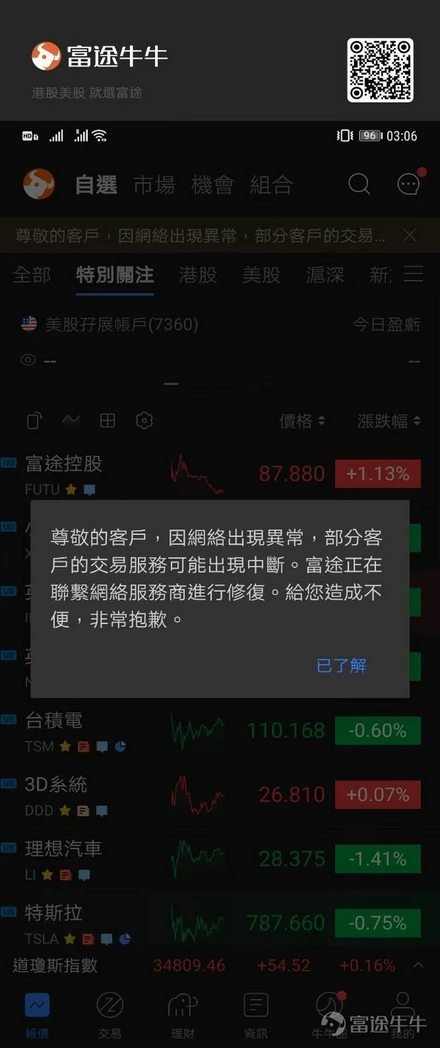 10 月 9 日凌晨,中资互联网券商富途出现故障。据用户爆料显示,富途在凌晨出现了登录后无法交易,甚至出现了资产清零的状态。澎湃新闻记者在富途 App 的交流板块中也看到,在大约 10 月 9 日凌晨 1 点左右,不少用户开始反映富途无法交易,看不到自己的资产等情况。