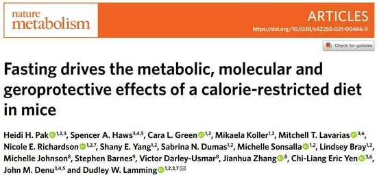 [1] Heidi Pak et al。, (2021) Fasting drives the metabolic, molecular and geroprotective effects of a calorie-restricted diet in mice。 Nature Metabolism DOI: 10.1038/s42255-021-00466-9