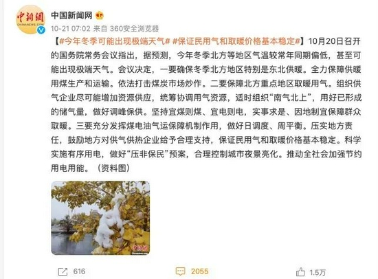 关于今冬气温偏冷的预测值得广泛关注,同时,大家也需要留意国务院常务会议提到的“可能出现极端天气”在农业生产、能源供应、交通运输等方面做好充足准备