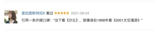 正面的评价极尽赞美:太空史诗、恢弘壮阔、古典主义、顶级视听享受。“当下看《沙丘》,就像身处1968年看《2001太空漫游》。”
