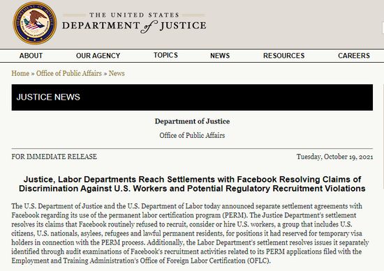 上周,美国司法部和劳工部发布声明,表示已经和Facebook就此案达成了和解。