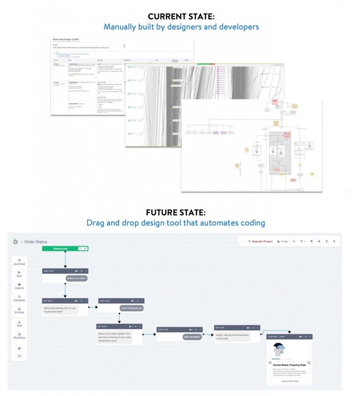 同时,非开发人员正在使用 Visio 或 LucidCharts 等工具来创建他们的对话流。Botmock 承诺提供更好的工具集,使团队能够避免设计中的盲点,并建立更好的整体对话体验。