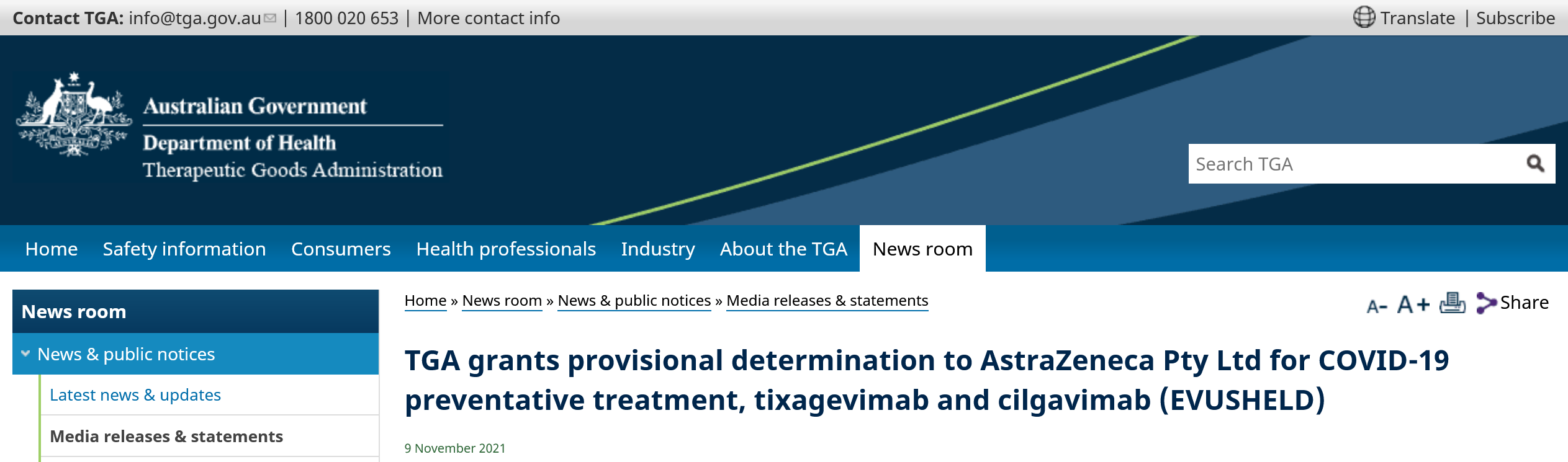 阿斯利康新冠抗体鸡尾酒疗法在澳迈出注册第一步
