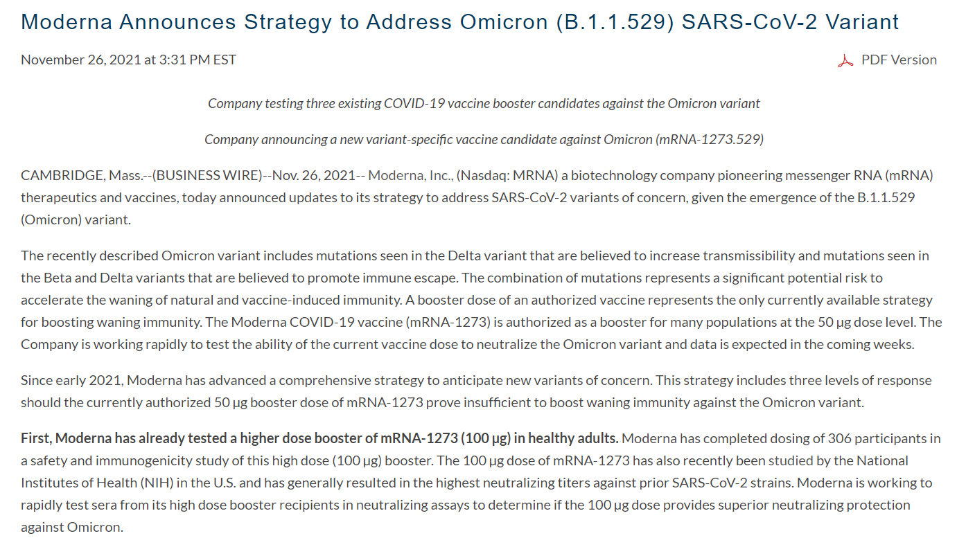 另一家疫苗开发商Moderna则表示,公司正在尝试一种针对奥密克戎病毒的增强针,并且还一直在测试更高剂量的现有增强剂的效果,并研究旨在预防多种变体的其他增强剂。