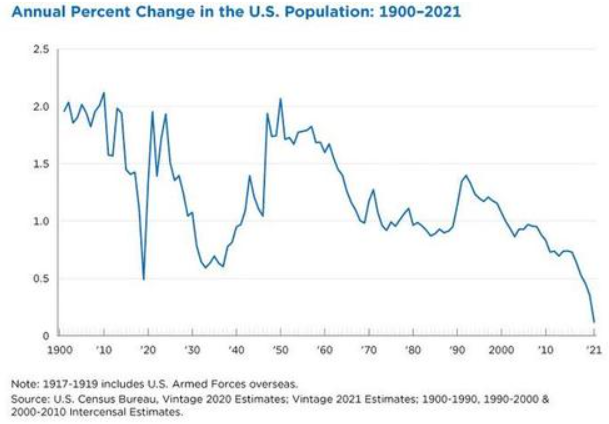 “新冠加剧了原本就已经困难的局面。”新冠大流行除了在美国经济金融领域搅弄风云之外,它最终还是在美国的人口结构上留下了无法磨灭的印记。美国人口普查局周二公布的数据显示,在截止7月1日的12个月之中,美国人口增速骤降至0.1%。