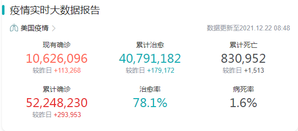 截止12月22日最新数据,美国新冠死亡人数已经达到了83万。