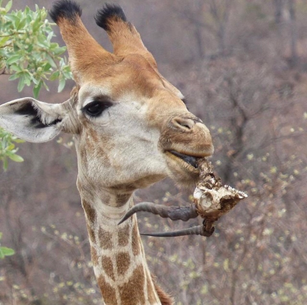 至于为什么长颈鹿有时候没咀嚼骨头,还把它叼在嘴里?