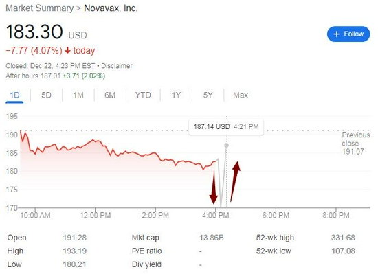公布试验发现后,诺瓦瓦克斯股价盘后先跳水,跌幅一度超过8%,而后转涨,涨幅曾超过3%。