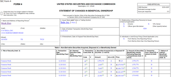 最新监管文件显示,美东时间12月28日周二晚间,马斯克共35次卖出特斯拉股票,最少的一次卖出500股,最多的一次则卖出74448股,共计再次出售了934,090股股票,价值10.19亿美元。