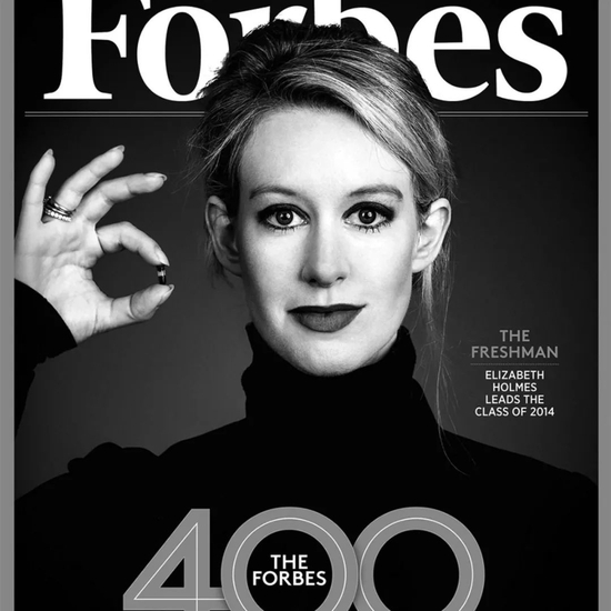 伊丽莎白·霍尔姆斯在《福布斯》杂志封面手拿药丸的形象,成为了科技史上的经典。当然,或许这也意味了她和 Theranos 迟早要完……