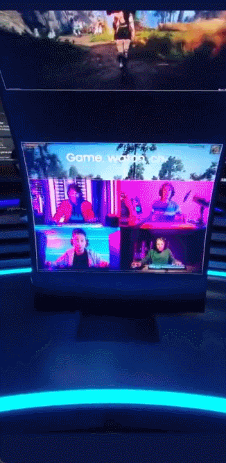 从三星的展示中,我们可以看到这块显示器可以分三个区域显示不同的内容,游戏、直播、视频三不误。当然,它的沉浸感也会更好,用户靠在椅子上使用这款显示器,似乎有一种置身于驾驶舱的感觉。