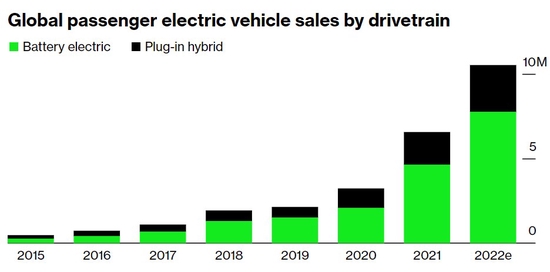 根据分析师的预测,中国今年将再次占据主导地位,2022年在全球电动汽车销量将接近600万辆。美国在电动汽车的普及方面远远落后于中国和欧洲,但随着福特(F.US)F-150 Lightning等新型电动卡车的上市,以及新的联邦电动汽车税收抵免政策,美国今年应该会获得很大的推动。
