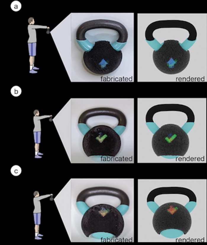 一个壶铃可以引导用户在运动时保持正确的位置。它是使用麻省理工学院开发的工具制作的,该工具允许三维物体从不同的视角改变其外观。
