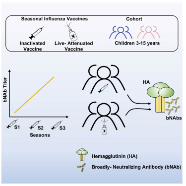 研究人员花了三年时间研究6个月至17岁儿童的免疫反应。他们发现,随着儿童年龄的增长,他们产生广泛保护性抗体的能力越来越差,因为他们通过感染或接种疫苗反复接触流感。