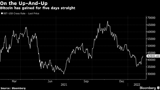 比特币连续第五天上涨,创下去年9月以来最长连涨纪录,投资者重新投身全球各地的风险资产。市值最大的加密货币比特币一度上涨3.2%,至43017美元。XRP一度上涨16%,除比特币外的加密货币涨幅更大。根据CoinMarketCap,柴犬币引领模因币走强,飙升24%。