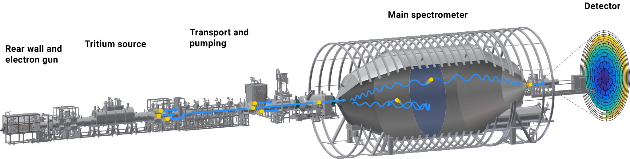 这就是卡尔斯鲁厄理工学院(KIT)跟来自六个国家的合作伙伴进行的国际卡尔斯鲁厄氚中微子(KATRIN)实验的挑战,它是世界上最敏感的中微子尺度。它利用了氚(一种不稳定的氢同位素)的β衰变,通过衰变过程中释放的电子的能量分布来确定中微子的质量。这需要一项重大的技术努力:这个70米长的实验包含了世界上最强烈的氚源及一个巨大的光谱仪,以前所未有的精度测量衰变电子的能量。