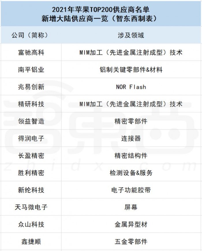 ▲苹果最新TOP200供应商名单中国大陆新增供应商
