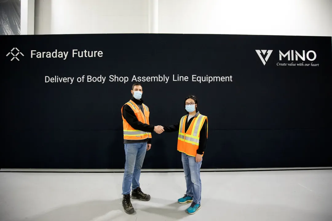 去年底,就有媒体曝光了法拉第未来(FF)工厂焊装生产线设备顺利出货的消息,并指出该批设备由广州明珞(MINO)提供。
