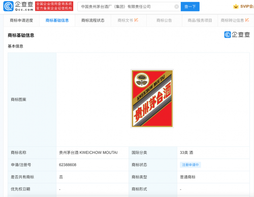 企查查App显示,中国贵州茅台酒厂(集团)有限责任公司已申请注册两种葵花图案商标。据悉,“葵花”牌茅台于1969年第一次推出,在1968-1978年间,“葵花”标志暂时取代了之前的“飞天仙子”标志,用于出口销售。