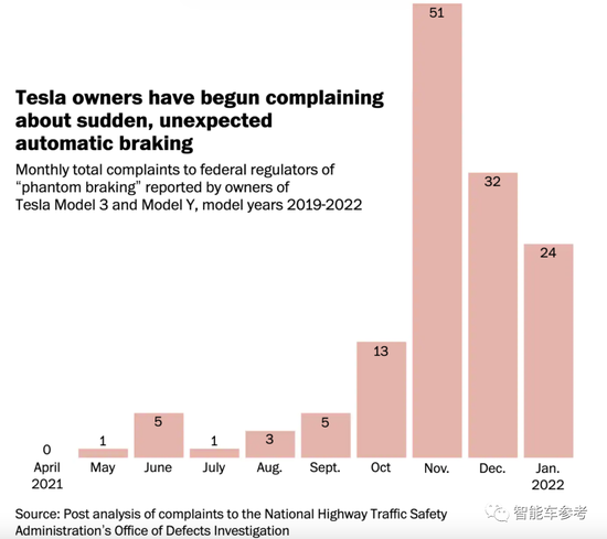 过去三个月,车主向 NHTSA 投诉的幽灵刹车问题上升到107起,而前22个月只有34起。