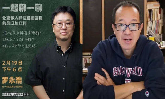 2月19日罗永浩以电商学苑校长的身份出现在公众面前,坐在他身边的是原新东方北京校区校长,在罗永浩为电商培训站台时,他的PPT中用了俞敏洪直播带货的案例。就在这几小时前,罗永浩的老校长俞敏洪,正以主播的身份在东方甄选账号中表示橱窗已经正式开通了。也就是说,同一天,罗永浩冠以校长之名,俞敏洪正在适应一个主播之位。