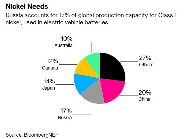据报道,在过去一年里,特斯拉(TSLA.US)与淡水河谷(VALE.US)达成了一笔未披露的镍交易,进一步确保关键的电动汽车电池金属供应。由于俄罗斯是全球最大的镍生产国之一,同时镍作为电动汽车电池的关键成分,俄乌冲突升级加剧了电动汽车制造商对镍供应的担忧。