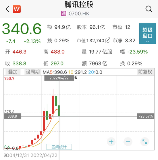 今年以来,在各种不确定因素叠加之下,港股走势继续疲软。作为港股“互联网龙头”腾讯控股也难逃下跌命运。截至4月22日收盘,今年以来恒生科技指数累计跌幅近30%,腾讯控股年内跌幅超23%。