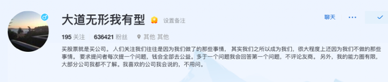 资料显示,段永平的雪球账号有超63万粉丝。简介中他表示:"买股票就是买公司。我喜欢的公司我会说的,不用问。"