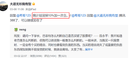 到了3月上旬,他还表示,计划腾讯每跌10%,就加一次仓。
