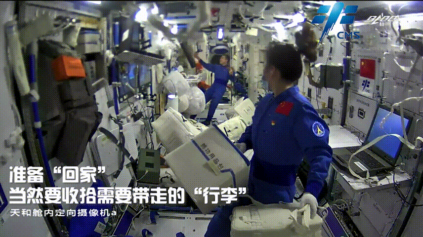 神十三航天员乘组在返回前整理物资