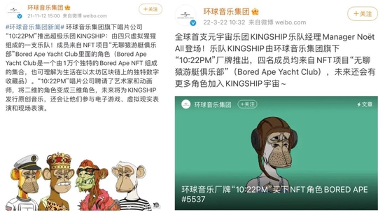 据媒体报道,环球音乐集团便于去年宣布成立虚拟乐队KINGSHIP,而这支乐队则由三只无聊猿和一只突变猿组成,随后环球音乐集团旗下厂牌10:22PM确定所购的NFT角色ManagerNotAll将担任KINGSHIP的经理。而One Republic乐队曾对外透露,该乐队主唱瑞恩·泰德组建了一个无聊猿BAYC衍生元宇宙乐队Bored Brothers,推出的第一首NFT歌曲为《DRIP》。