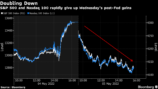 虽然美联储50个基点的加息创下20多年来之最,但鲍威尔否定了加75个基点的可能性,最初缓释了投资者的紧张情绪。然而他也暗示,美联储仍在努力遏制居高不下的通胀,“接下来的几次会议”可能会继续加息50个基点。