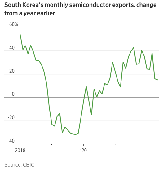 大多数技术供应商所在的东亚将感受到强烈的痛苦。最近中国上海和其他城市的封锁已经扰乱了韩国和台湾等邻近经济体的供需。韩国的出口在 5 月份有所回升,但部分原因是去年那个月的工作日减少了。