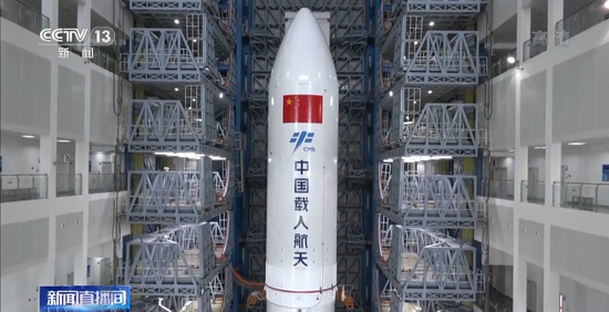 问天实验舱任务01指挥员 廖国瑞:长五火箭(B)的吊装和其他火箭吊装的方式不一样,而且我们长五火箭(B)和其他火箭的支撑方式也是不一样的,就是我们的四个助推然后支撑我们的芯一级,相当于是一个“抬轿子”的模式。因为长五火箭(B)它的直径比较大,芯一级的直径有五米,在整个吊装过程中,在受限空间操作,完成这么大直径的火箭的吊装,需要我们的精细操作、精心指挥,才能完成复杂的吊装任务。