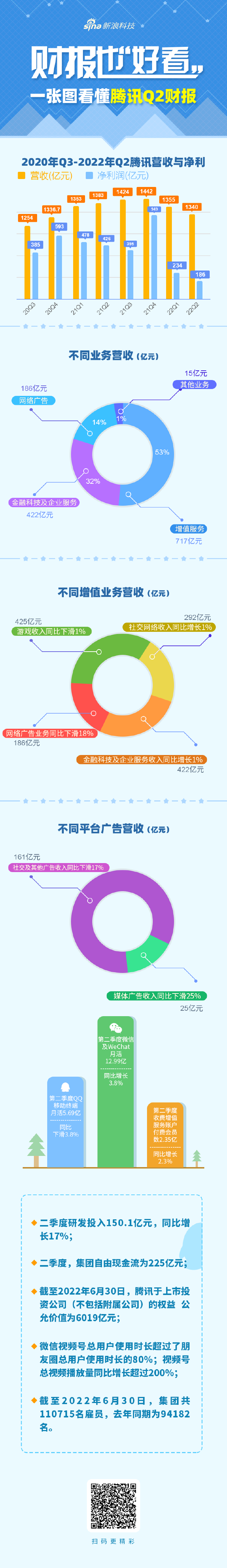 董事会主席兼首席执行官马化腾表示:“在第二季期间,我们主动退出非核心业务,收紧营销开支,削减运营费用,使我们在收入承压的情况下实现非国际财务报告准则盈利环比增长。展望未来,我们将聚焦于提升业务效率并增加新的收入来源,包括于广受欢迎的视频号中推出信息流广告,同时持续通过研发推动创新。我们约半数的收入来源于金融科技及企业服务与网络广告,这些业务直接助力并得益于整体经济活动,中国经济的增长将为我们带来收入增长机会。”