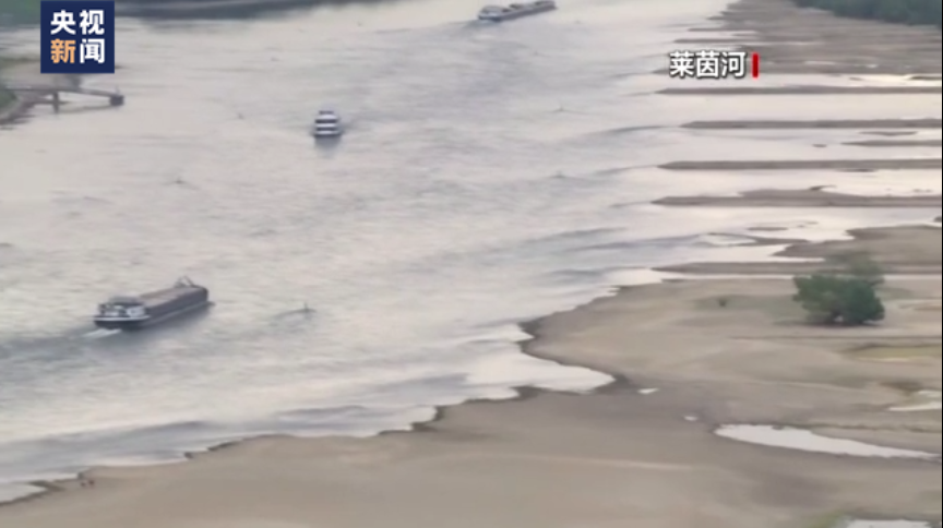 流经欧洲多国的莱茵河作为欧洲航运要道同样存在水位下降的问题。卫星图像显示,受水位下降影响,莱茵河部分河道水面宽度相比之前已大幅变窄。