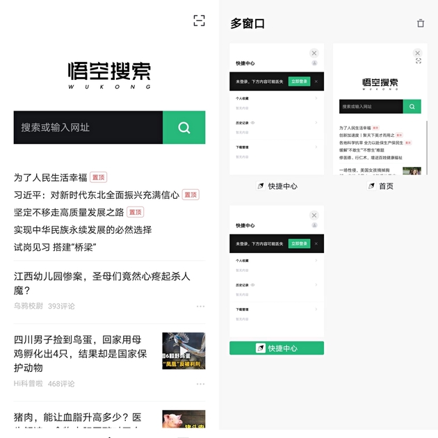 此外,在快捷中心提供收藏、下载、历史记录等基础服务,让搜索更加快捷轻便。多窗口服务则方便用户在不同页面间的跳转。