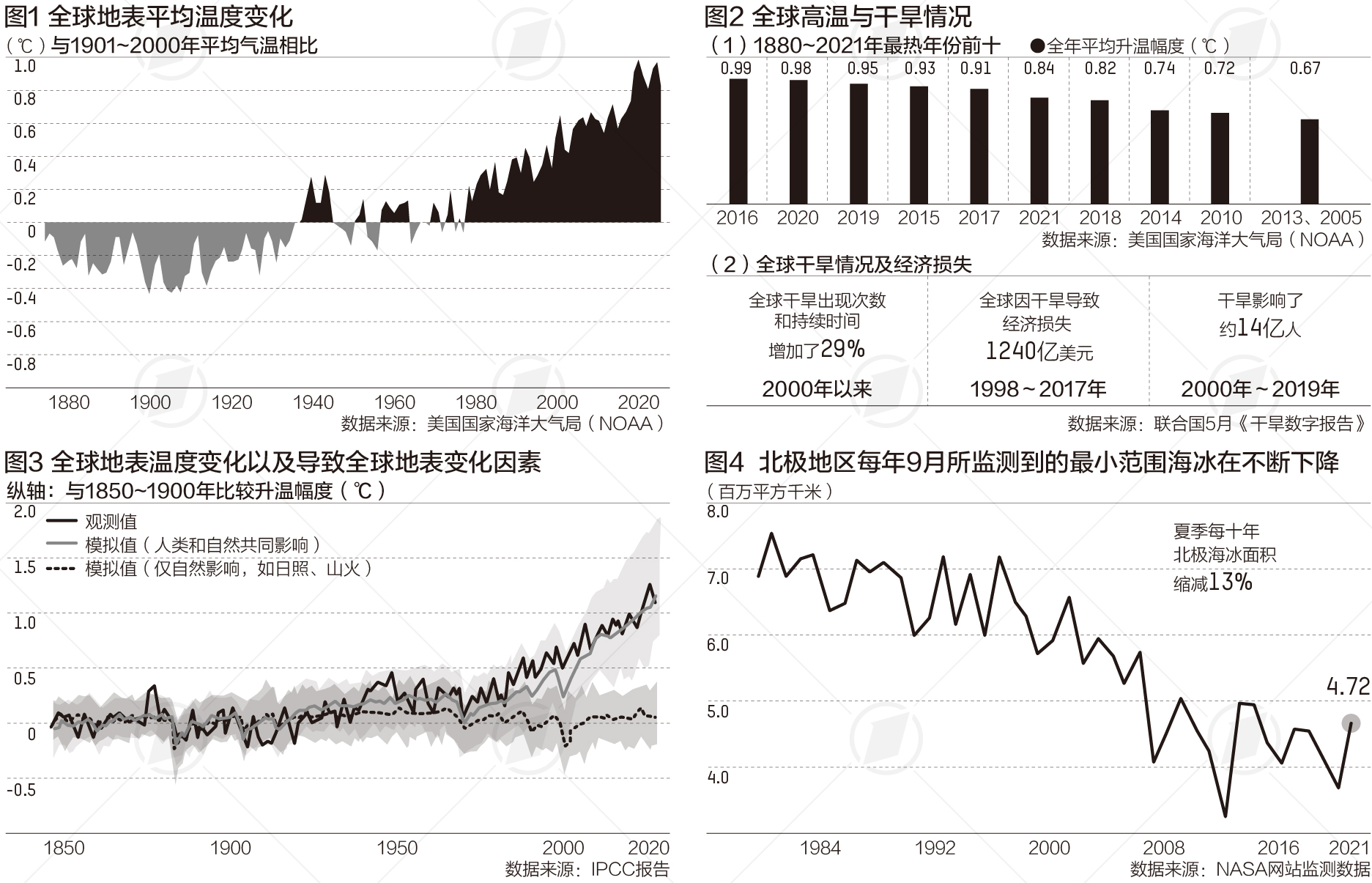 IPCC分析称,最近50年来,全球变暖正以过去两千年以来前所未有的速度发生,热浪、高温、干旱、飓风等极端天气将更为平常。