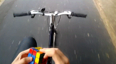 Karpathy在Google实习期间内部渠道搞到了一台GoogleGlass,录制了这段在自行车上解魔方的视频 动图来源:AndrejKarpathy