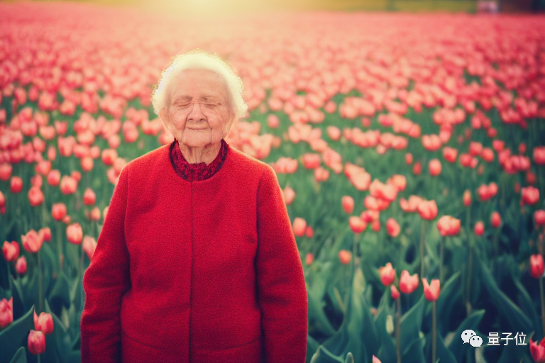 比如,有网友用Midjourney合成了自己去世祖母在花丛里的照片,并深情表达了对祖母的思念。