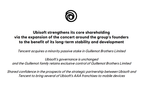 继上周投资日本游戏公司 FromSoftware ,成为其第二大股东后,腾讯这周又出手投资了法国老牌游戏商育碧(Ubisoft),扩大其在海外游戏市场的布局。9月6日,育碧发表声明称,腾讯现以3亿欧元收购其最大股东Guillemot Brothers多达 49.9%的股份,获得5%的投票权,该公司由育碧联合创始人Yves Guillemot经营。