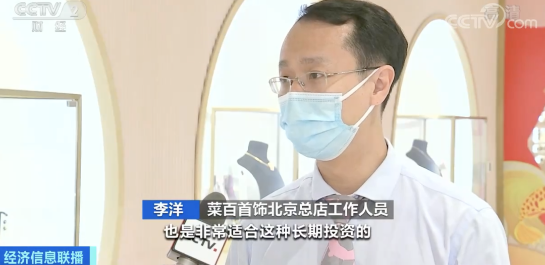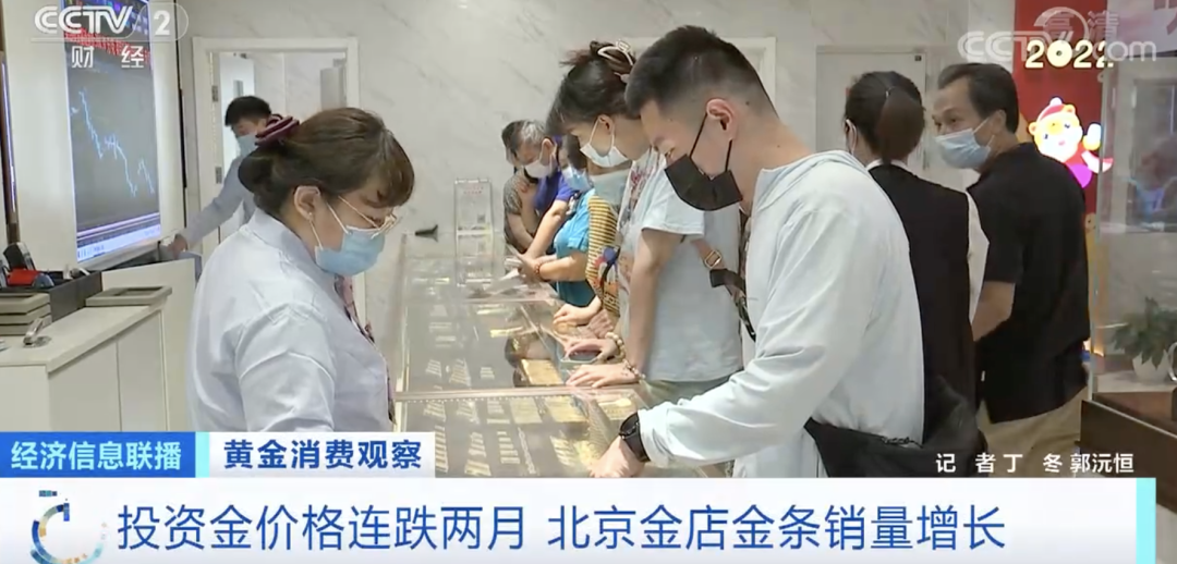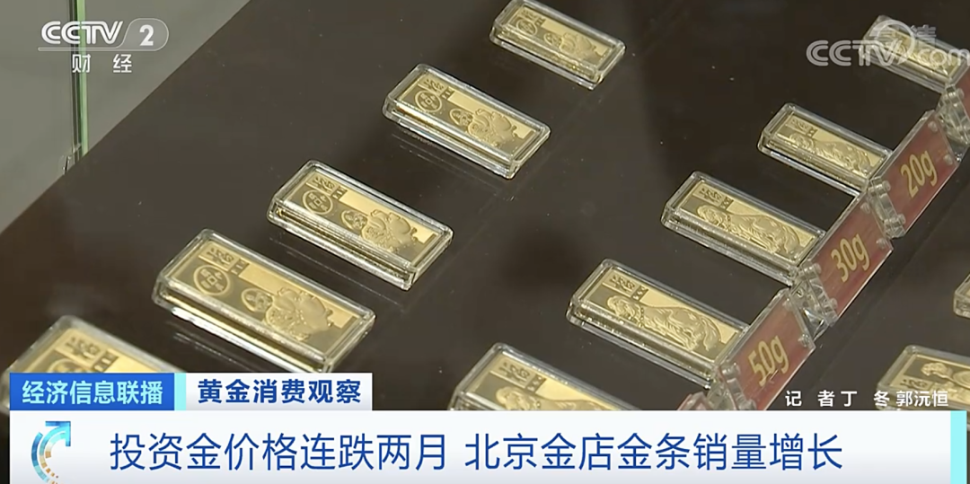菜百首饰北京总店工作人员 李洋:因为国际金价在下行过程当中,满足很多投资者心理的预期,金条作为家庭资产的配置,非常适合长期投资,所以销售明显有所增长。