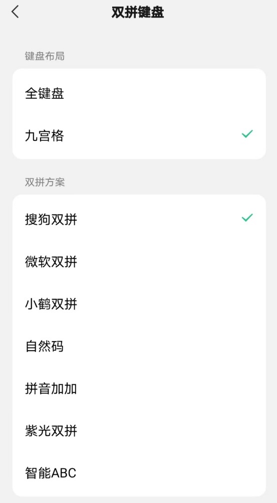 比较引人注意的是双拼键盘,目前包含了7种输入法的双拼方案,如搜狗双拼、微软双拼、智能ABC、拼音加加等,为使用双拼输入法的用户提供了更多选择。