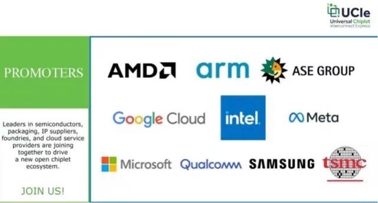 目前,全球Chiplet生态系统的主要开放联盟是UCIe。UCIe联盟指定了die-to-die裸片互连标准,联盟创始成员包括英格尔、AMD、Arm、Google云、英特尔、Meta、微软、高通、三星和台积电等,这里几乎包含所有全球最顶级的芯片玩家,除了苹果。