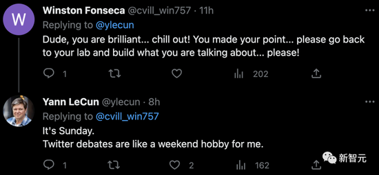 LeCun回复:‘今天可是周日,Twitter大辩论是我周末最爱的消遣了。’