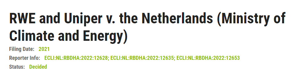 2021年时,德国最大电力生产商莱茵集团和天然气巨头Uniper一度依据条约起诉荷兰气候与能源部要求赔偿,但隔年被荷兰海牙法院拒绝。