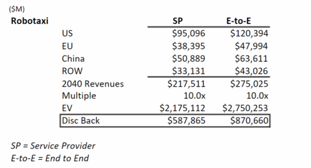 加拿大皇家银行保守估计,特斯拉robotaxi在美国的渗透率将为25%,在西欧的渗透率为8%,在中国的渗透率为7%。全球非特斯拉robotaxi的渗透率为20%: